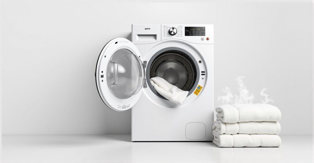 Een warmtepompdroger droogt je was bij 40 tot 60 graden Celsius, lager dan gewone drogers. Het gebruikt een warmtepomp en koelmiddel in een gesloten circuit waar warme, vochtige lucht hergebruikt wordt. Deze aanpak helpt je energierekening en je kleding.
